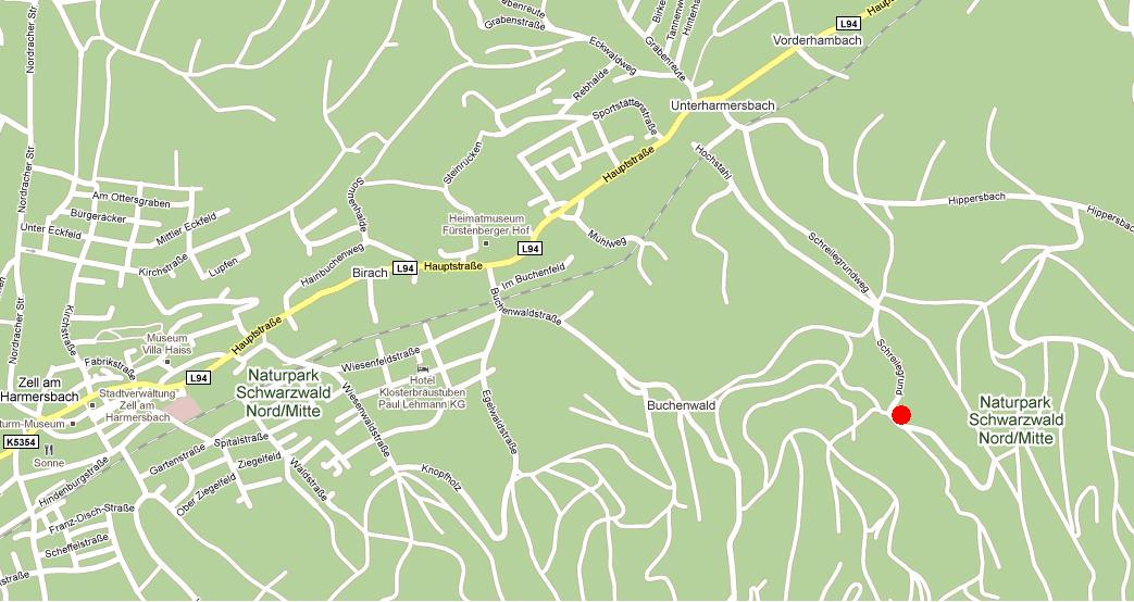 Nach Ortsschild Zell am Harmersbach gut 2 km gerade aus.